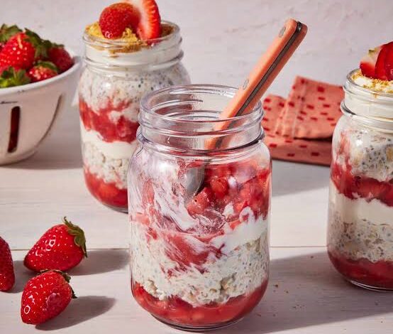 - Layer the cottage cheese mixture, strawberries, granola, and graham crackers in a jar.